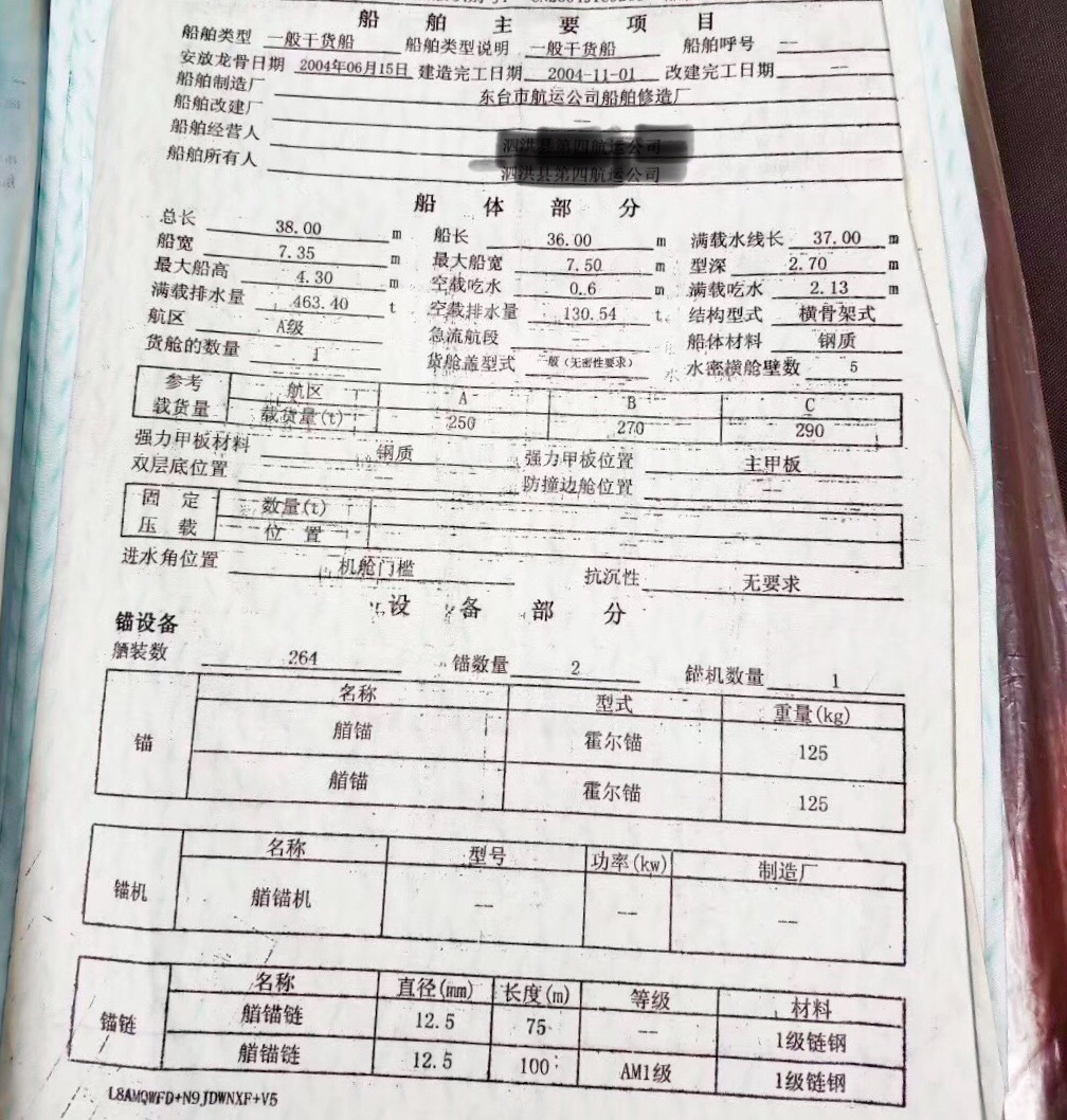 2004年38米463吨货船