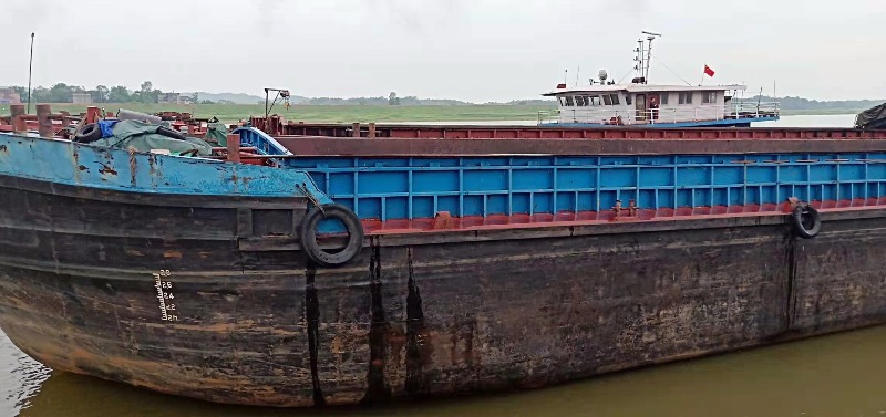 2003.6江西湖口造船长54.35/宽10.3/深3.38/9道龙45(敞口长:37米,宽:8.2米,高:4.2米)两台南通210车,有武汉做的推蓬,船正在上坡打油漆,53万