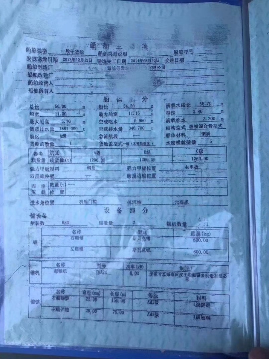 吉船 56X11.2X3.8 14年8月 蒙城发达船厂 龙筋15道 下料58. 前楼1.55.后楼1.68左右 马力维柴408x2,配员2类。开价210万,看船谈价。
